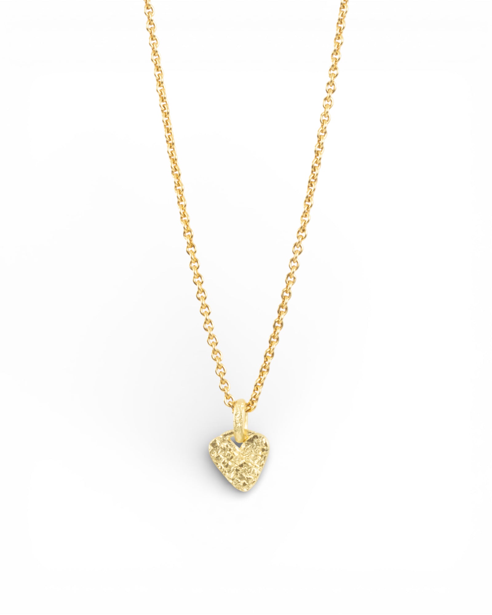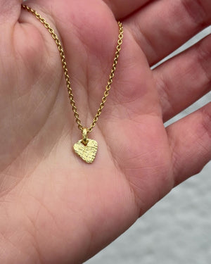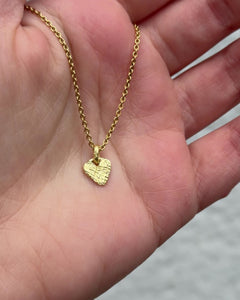 Kleiner Herzanhänger aus 750 Gold mit strukturierter Oberfläche. Die feine Herzform und die lebendige Oberflächengestaltung verleihen dem Anhänger eine besondere Tiefe und einen warmen Glanz