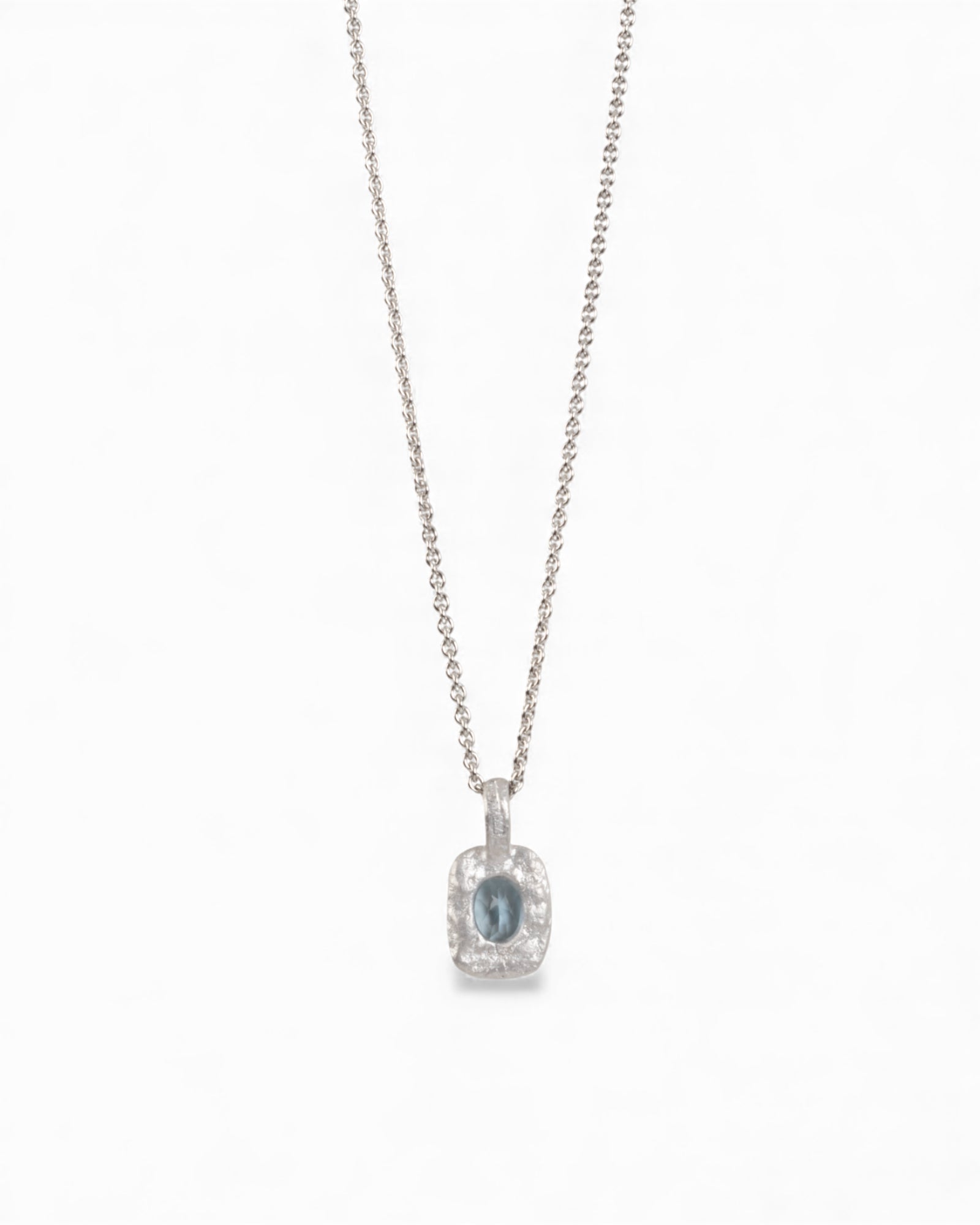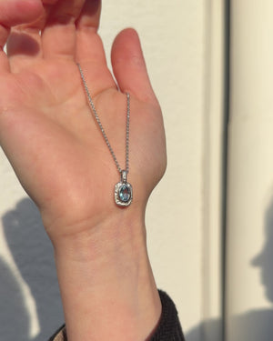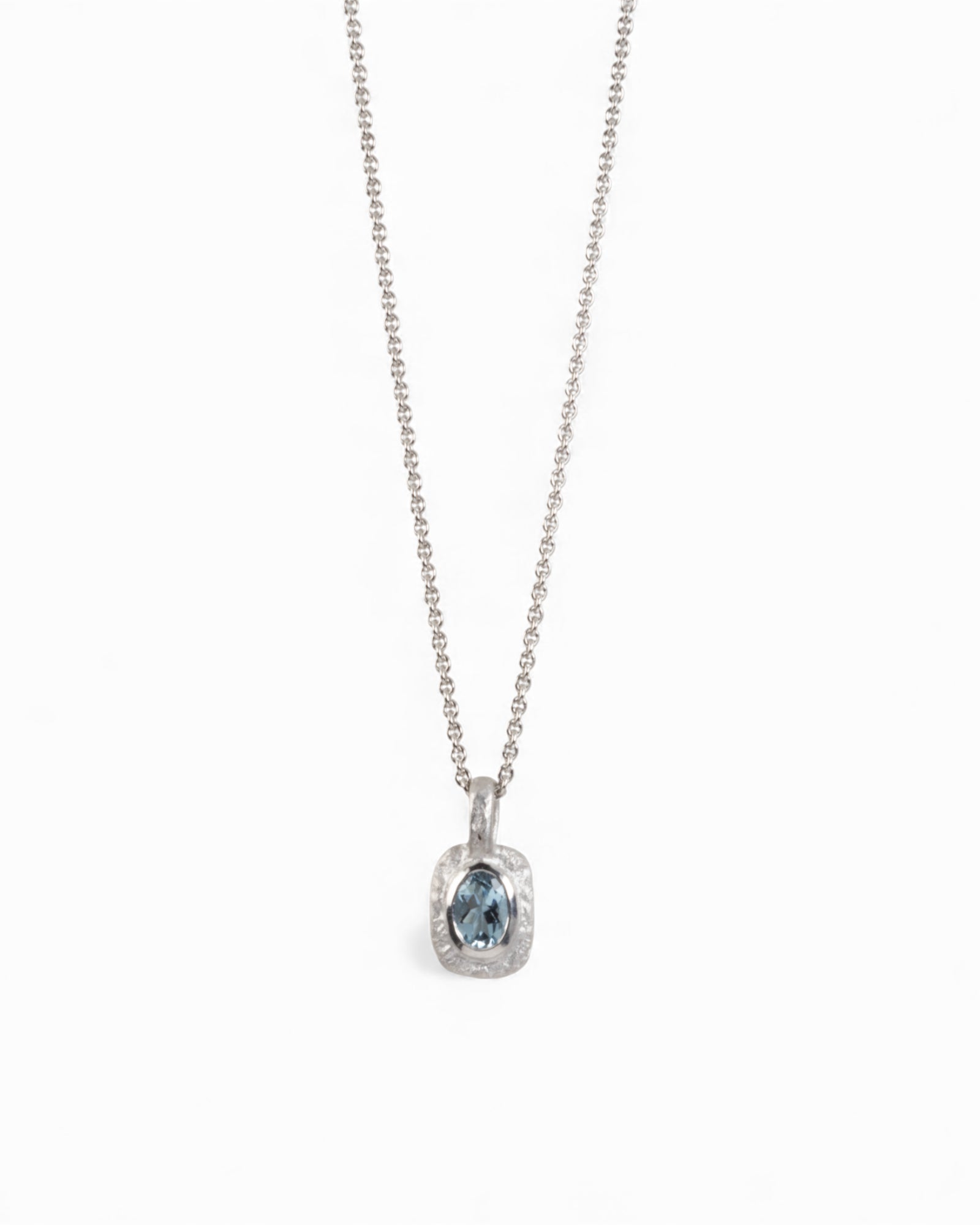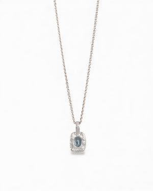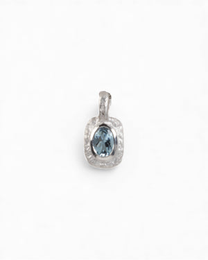 Organisch-eckiger 750 Weißgold-Anhänger mit blauem Aquamarin (0.72 ct) mit passender Goldkette