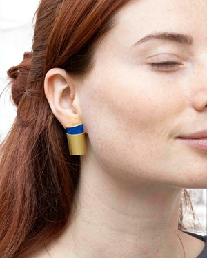 Handgefertigte Ohrclips mit schönen Lapislazuli-Steinen. Die Edelsteine haben ein Gesamtgewicht von 16,08 ct und zeigen das charakteristische kräftige Blau des Lapislazulis. Gefasst sind sie in 750 Gelbgold. Goldschmiede Krack- und 750 Gold-Stempel auf der Rückseite. Jedes Paar ist ein Unikat.