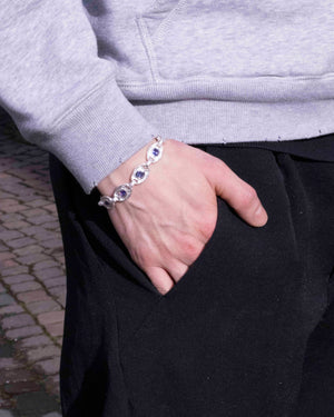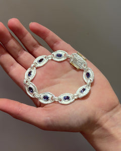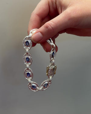 925 Silberarmband mit 8 Tansaniten (zus. 7,17 ct). Die oval facettierten Tansanite zeigen ein intensives violett-blaues Farbspiel und sind einzeln von Hand gefasst. Das Armband wirkt fein und hochwertig, lässt sich solo tragen und eignet sich ebenso für das Kombinieren mit weiteren Armbändern.