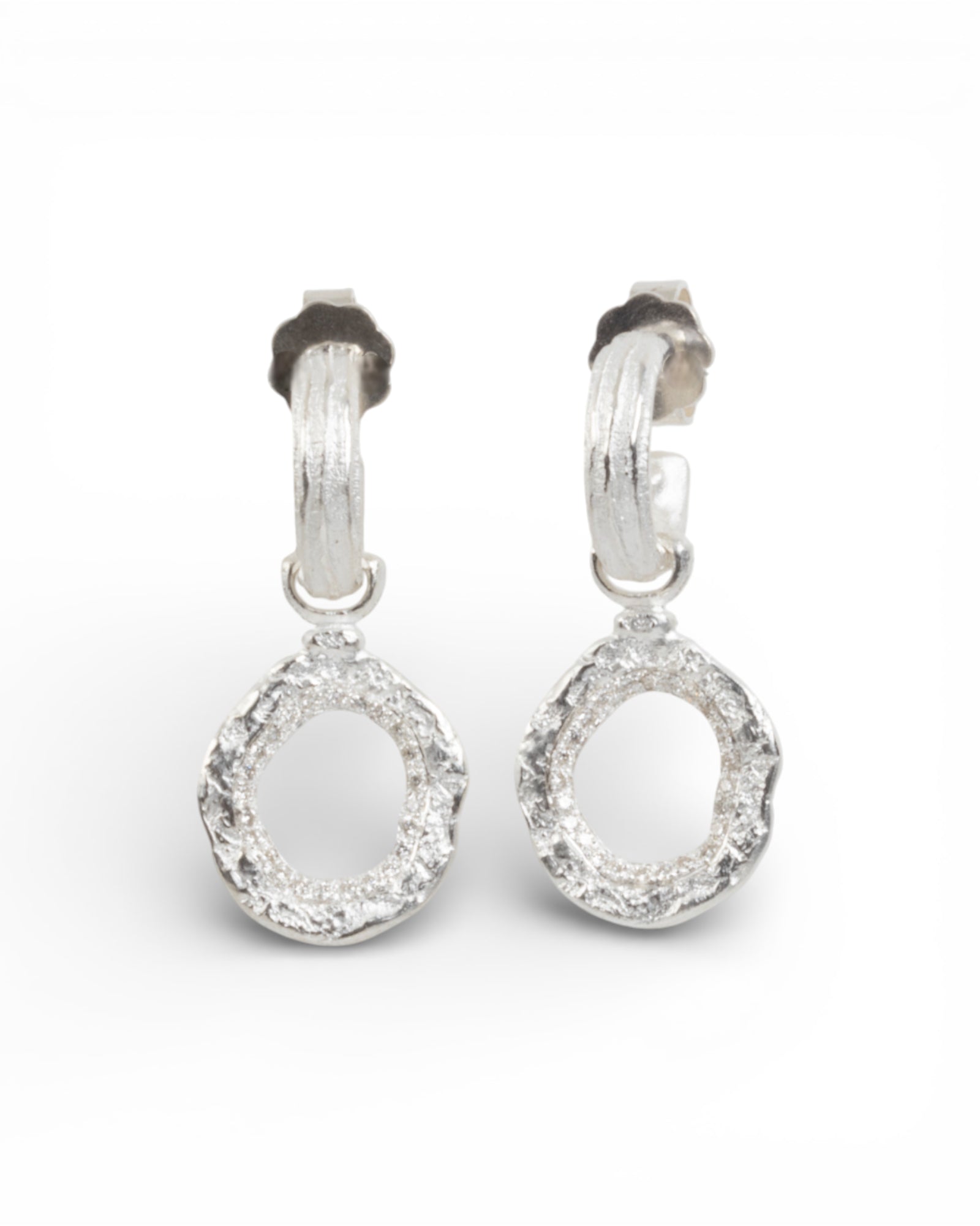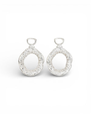 Abnehmbare Anhänger aus 925 Silber mit Brillanten für unsere Bark-Creolen. Die Anhänger lassen sich flexibel mit unseren Bark-Creolen kombinieren. In der mittigen Öffnung sind 48 Brillanten gefasst, die bei jeder Bewegung wunderschön funkeln. Je nach Anlass können die Creolen pur oder mit den Anhängern getragen werden. Auf der Rückseite befinden sich der 925 Silber- sowie der Krack-Stempel.